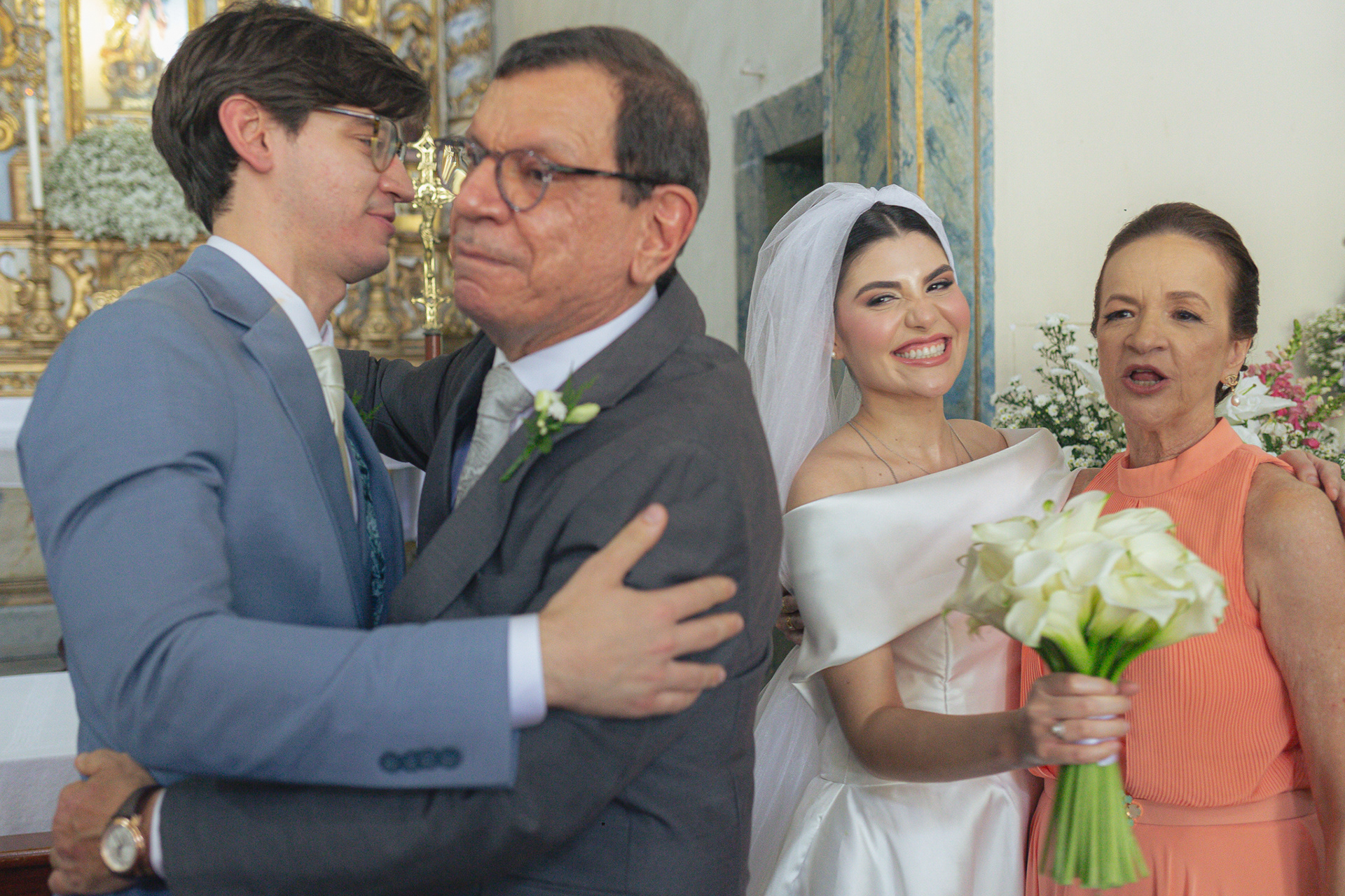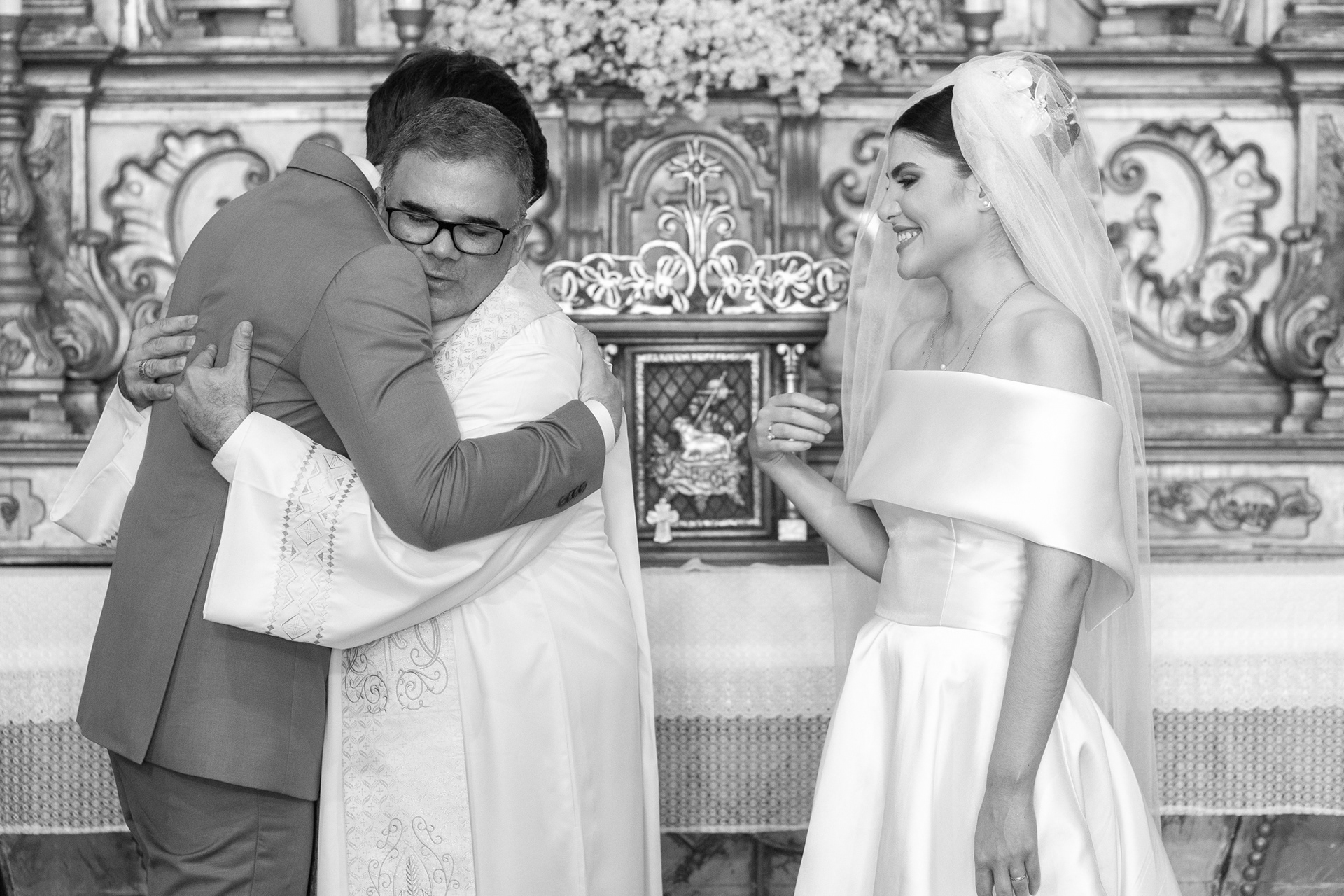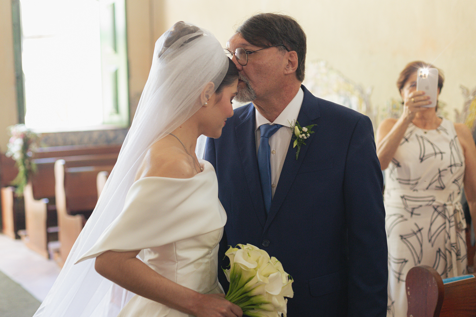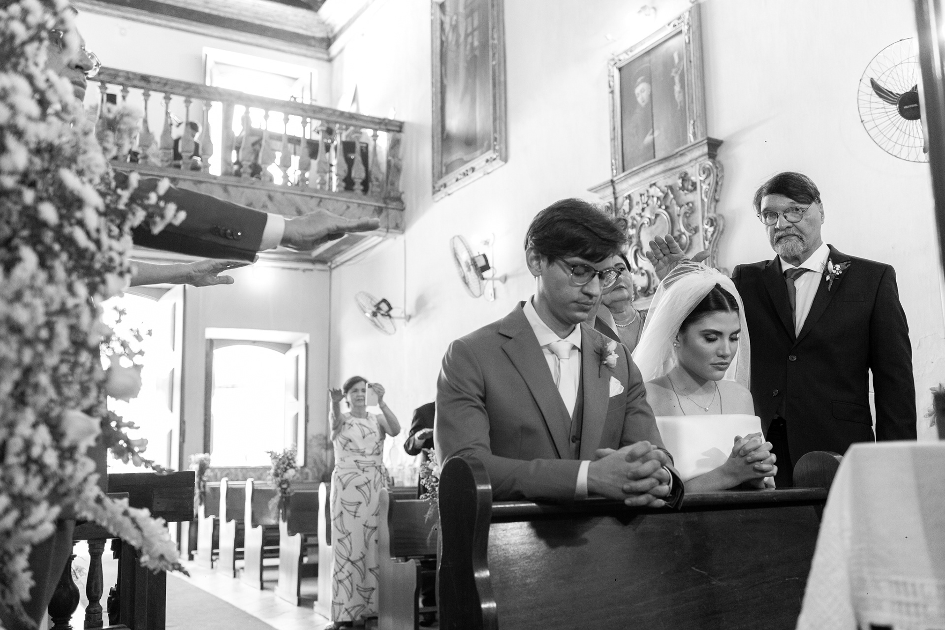 A igreja, com sua simplicidade encantadora, foi o cenário ideal para um casamento onde o amor e a cumplicidade falaram mais alto do que qualquer outro detalhe.