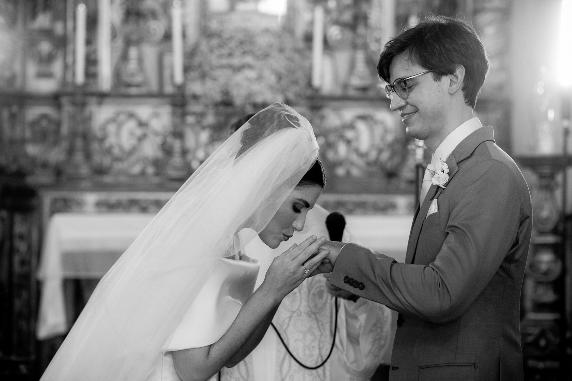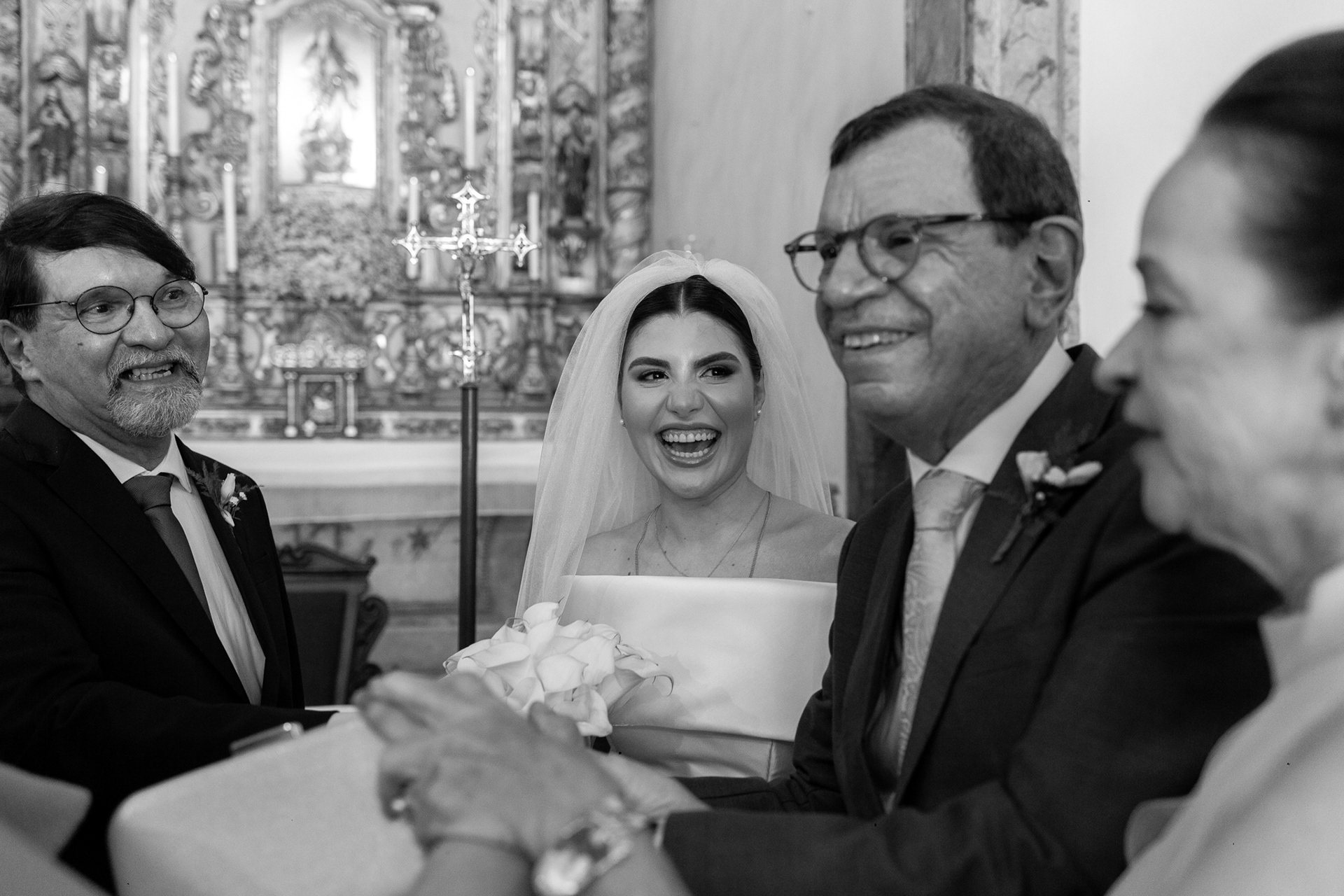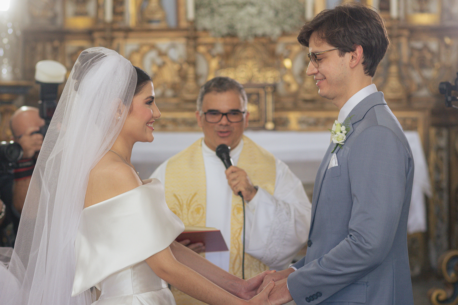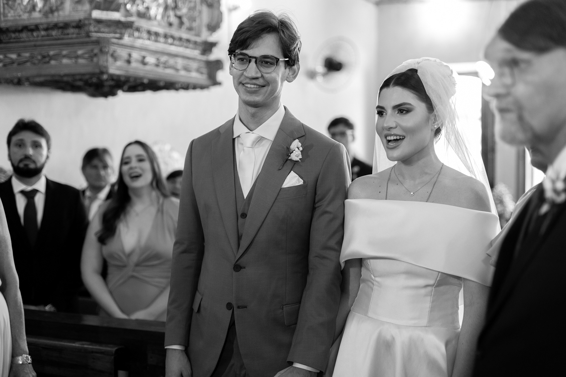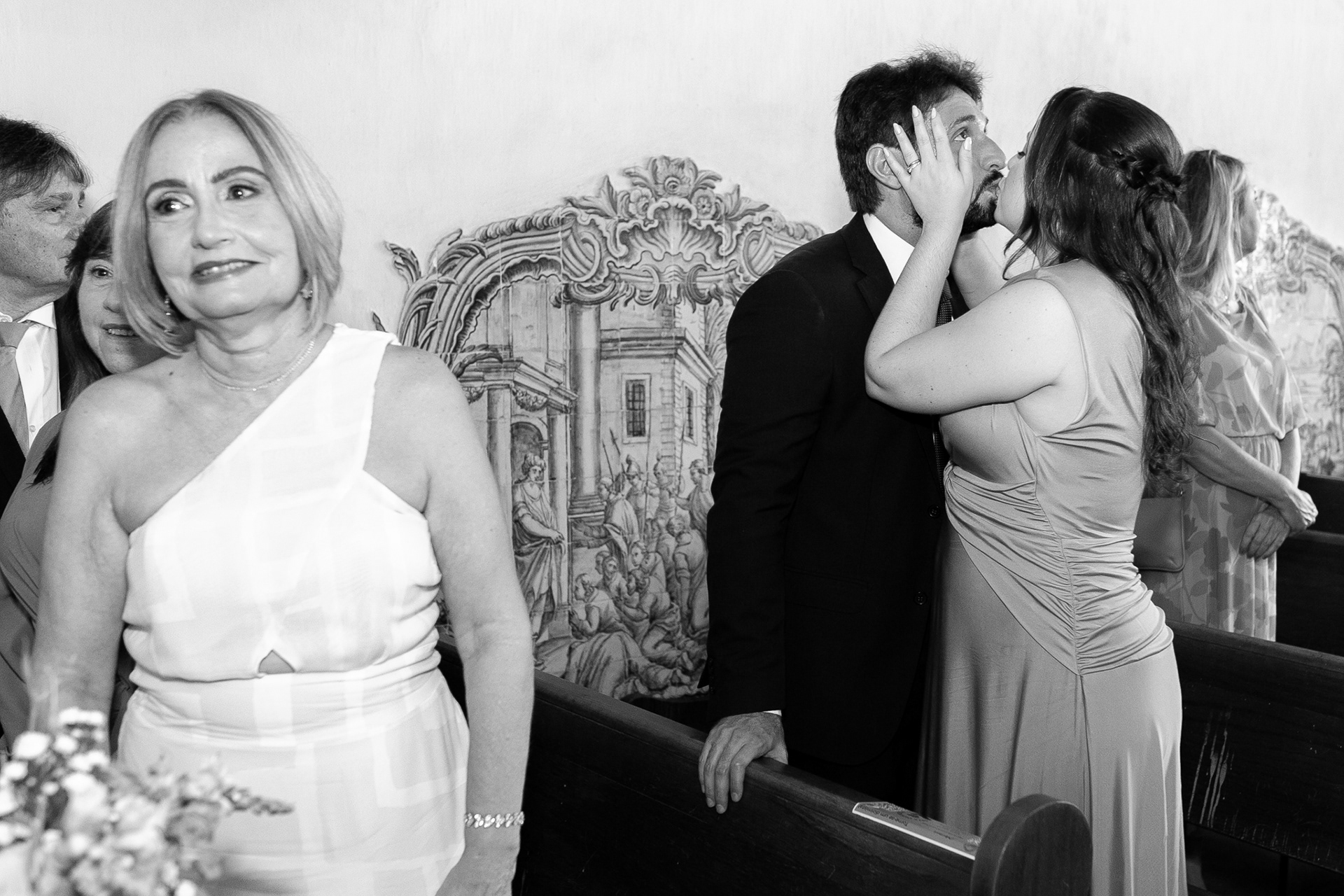 A igreja, com sua simplicidade encantadora, foi o cenário ideal para um casamento onde o amor e a cumplicidade falaram mais alto do que qualquer outro detalhe.