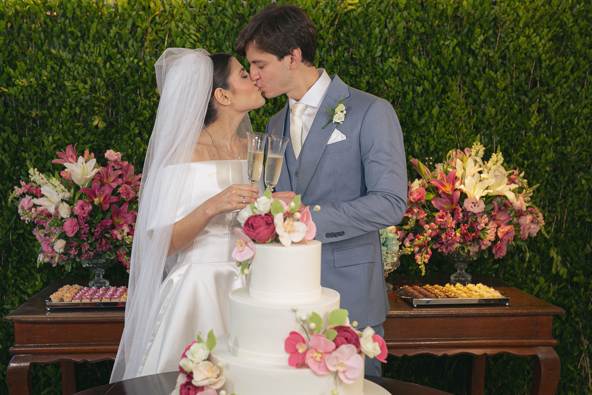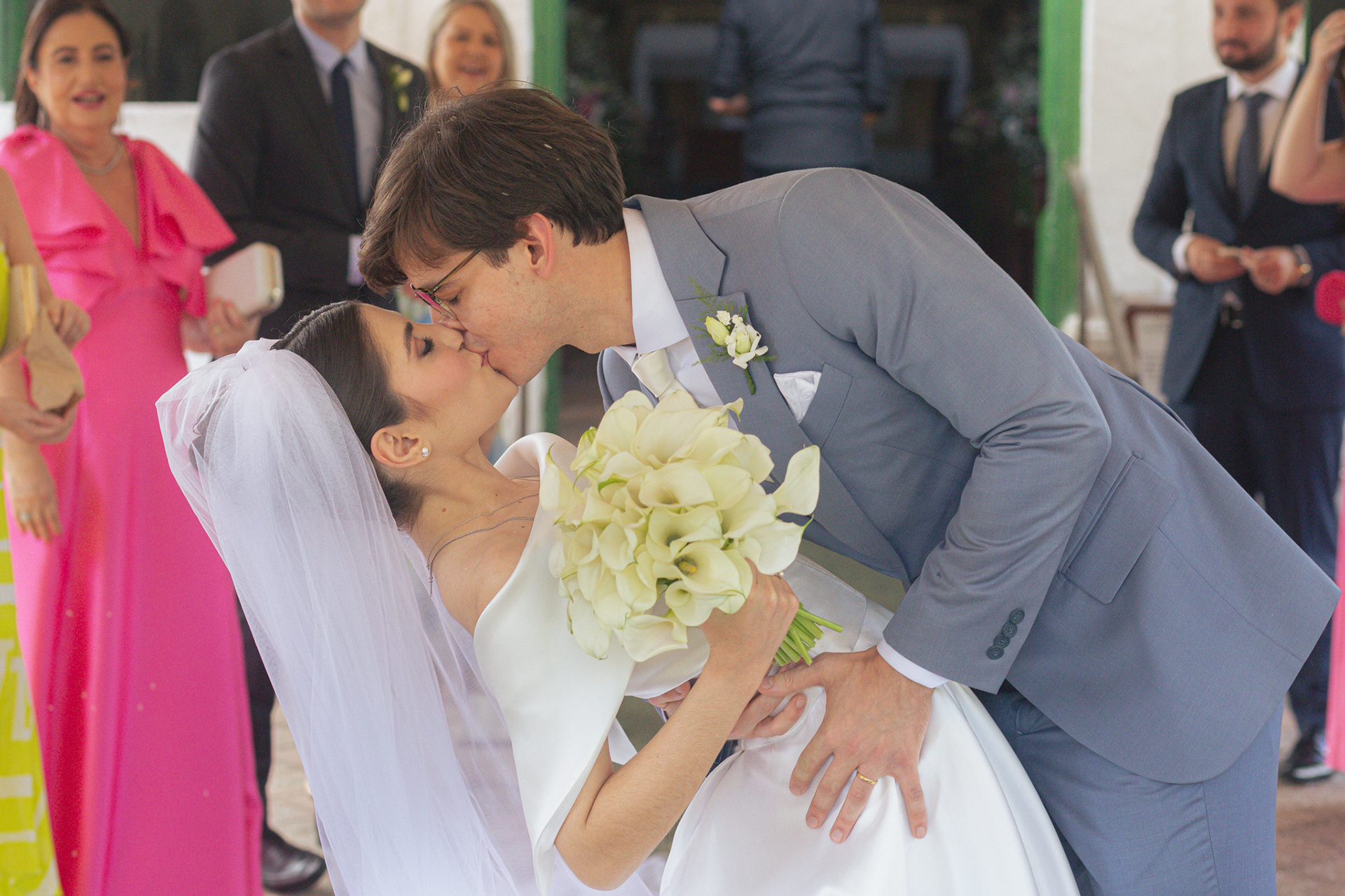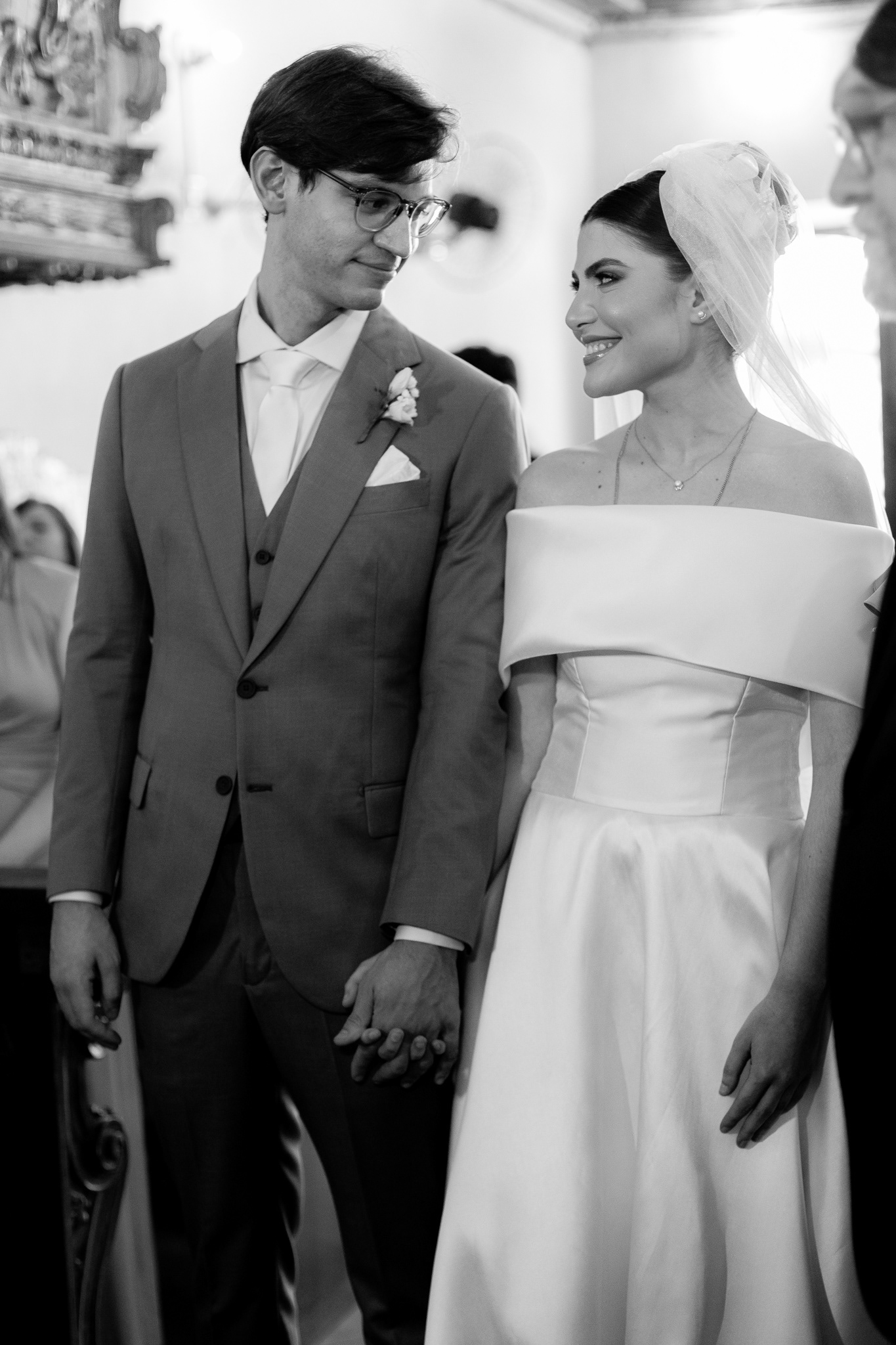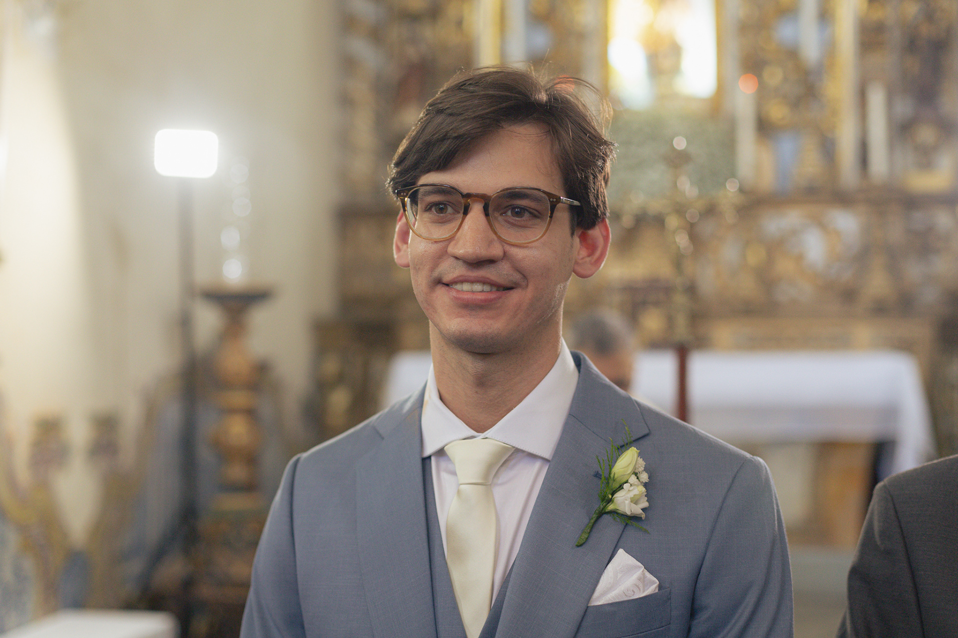 A igreja, com sua simplicidade encantadora, foi o cenário ideal para um casamento onde o amor e a cumplicidade falaram mais alto do que qualquer outro detalhe.