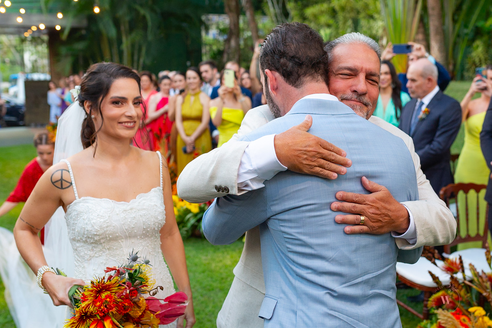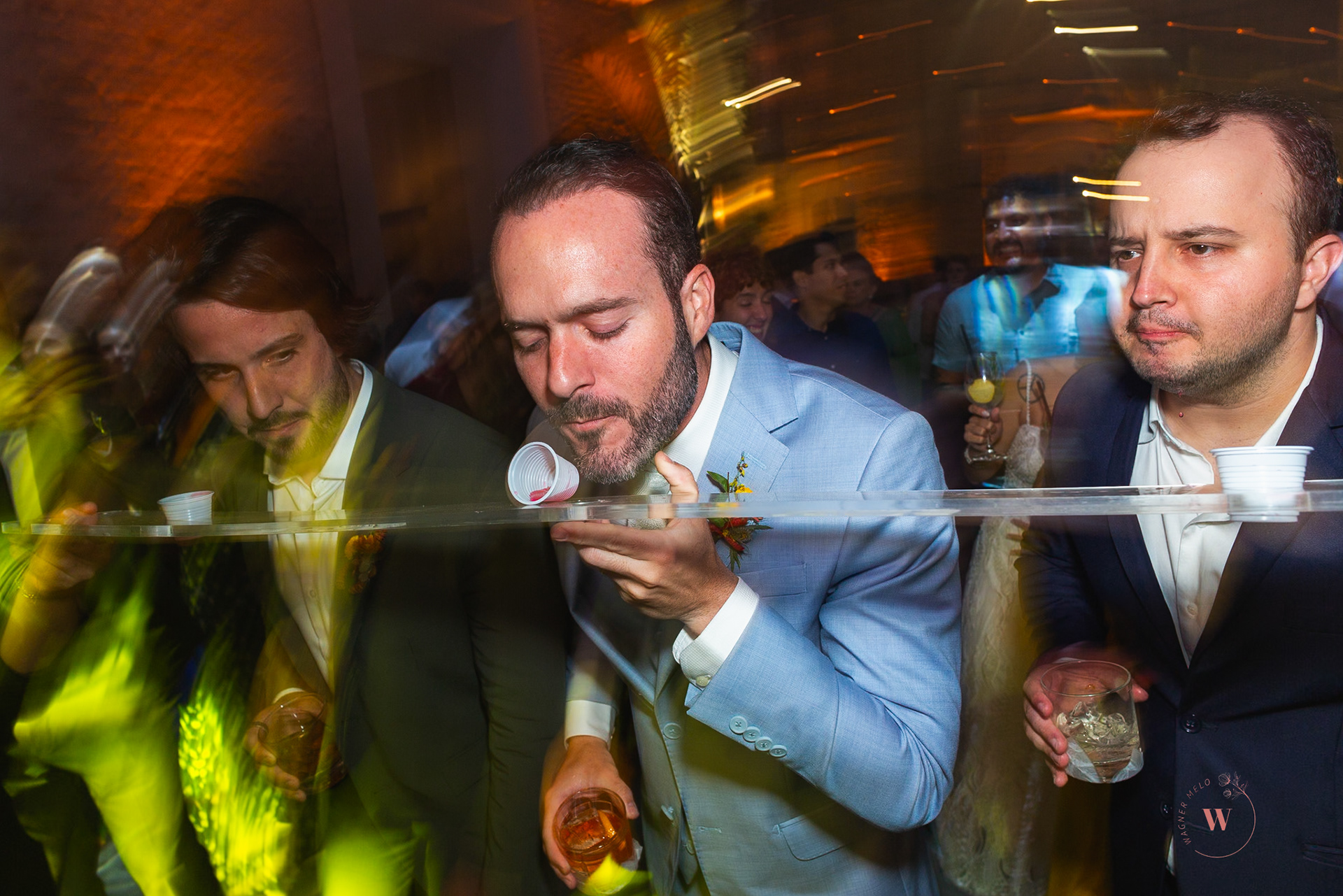 Fotografar esse casamento foi como capturar fragmentos de uma narrativa não dita. Cada clique parecia desvendar uma camada de complexidade: o olhar distante de um convidado, as mãos entrelaçadas de um casal que dançava ao som de uma música lenta.